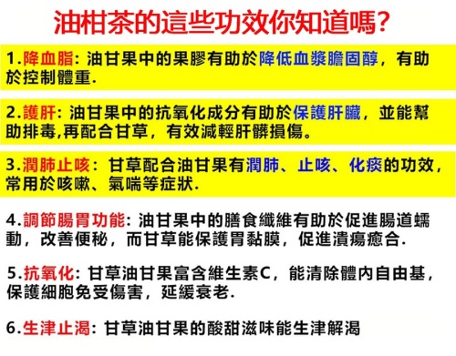 油柑茶不僅可以潤桑護喉,緩解喉嚨的不適,甘油果內的維生素C+多酚能延緩衰老,熬夜和皮膚暗沉的適合多吃。除此之外還有調節血糖,健脾開胃的功效,有高血壓,高血糖,高血脂的人非常適合!!!